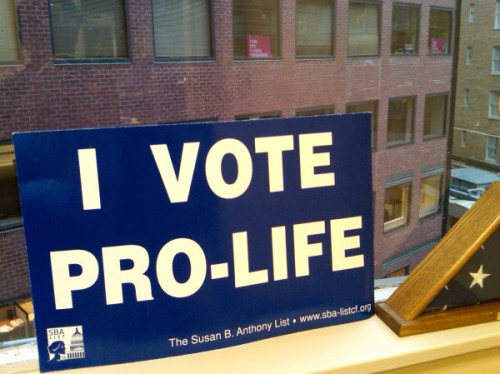 This next photo has nothing to do with cookies. It’s just cute. Entitled, “DC office window abortion wars,” it was posted by Thomas Peters of American Papist. Look closely…
