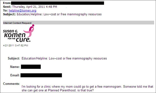 Komen is erroneously sending women to Planned Parenthood for mammograms