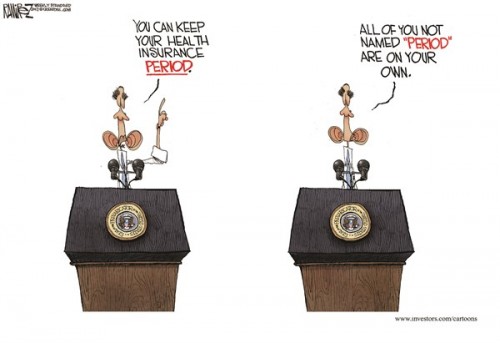 Seriously though, I think he was drawing a distinction between a single payer system and a system that still relies on insurance companies. I can see how it was misleading though – I mean, with millions of people switching and losing plans yearly, it would be silly to assume every single person who heard speeches 3 or 4 years ago wouldn’t lose their insurance.