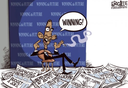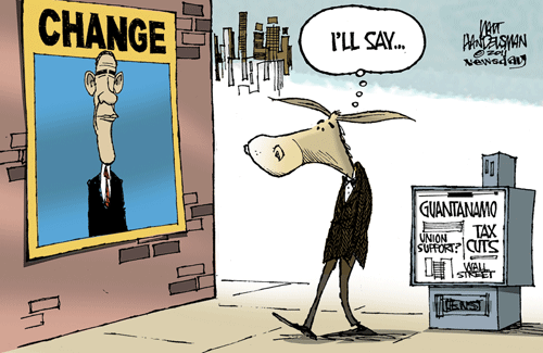 My top 5 favorite political cartoons this week are all about Obama from both the conservative and liberal perspective. Interestingly, sometimes it’s hard here to tell the difference.