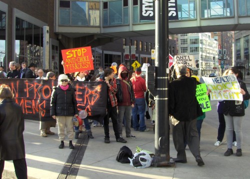 I’m still waiting on the full story but have photos, video, and basic info. Only 23 pro-aborts turned out to protest the pro-life tribute to Joe Scheidler held in Chicago on the evening of April 2.