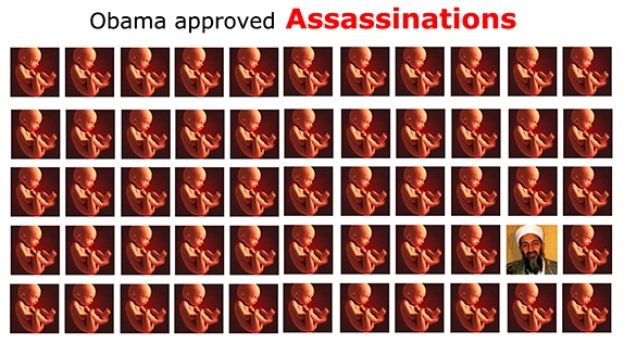 JoAnna, are you saying that Obama goes around pointing at the stomachs of pregnant women and saying ‘get the CIA/military/whatever government security agency to kill that fetus’? Because that is what would need to be happening for the term ‘assassination’ to be applicable. Proof please. Like I said, extremism.